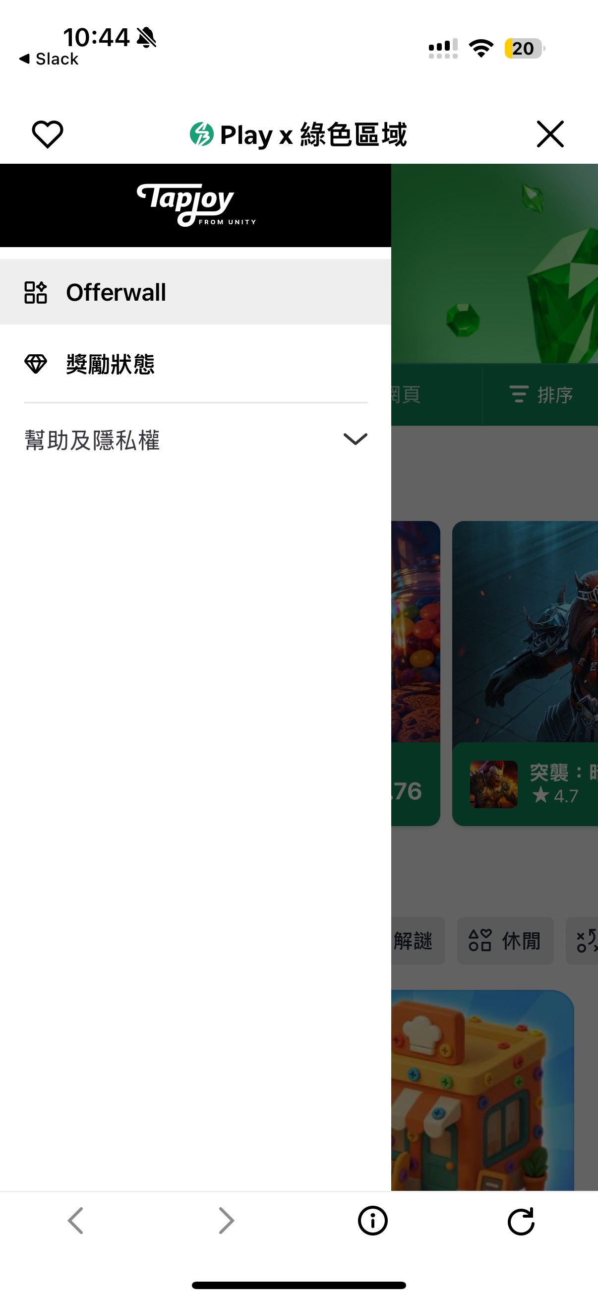 返回 App 您會看到 Offerwall 的商店頁面,通常會顯示為「免費優惠」、「賺取金幣」或類似名稱。