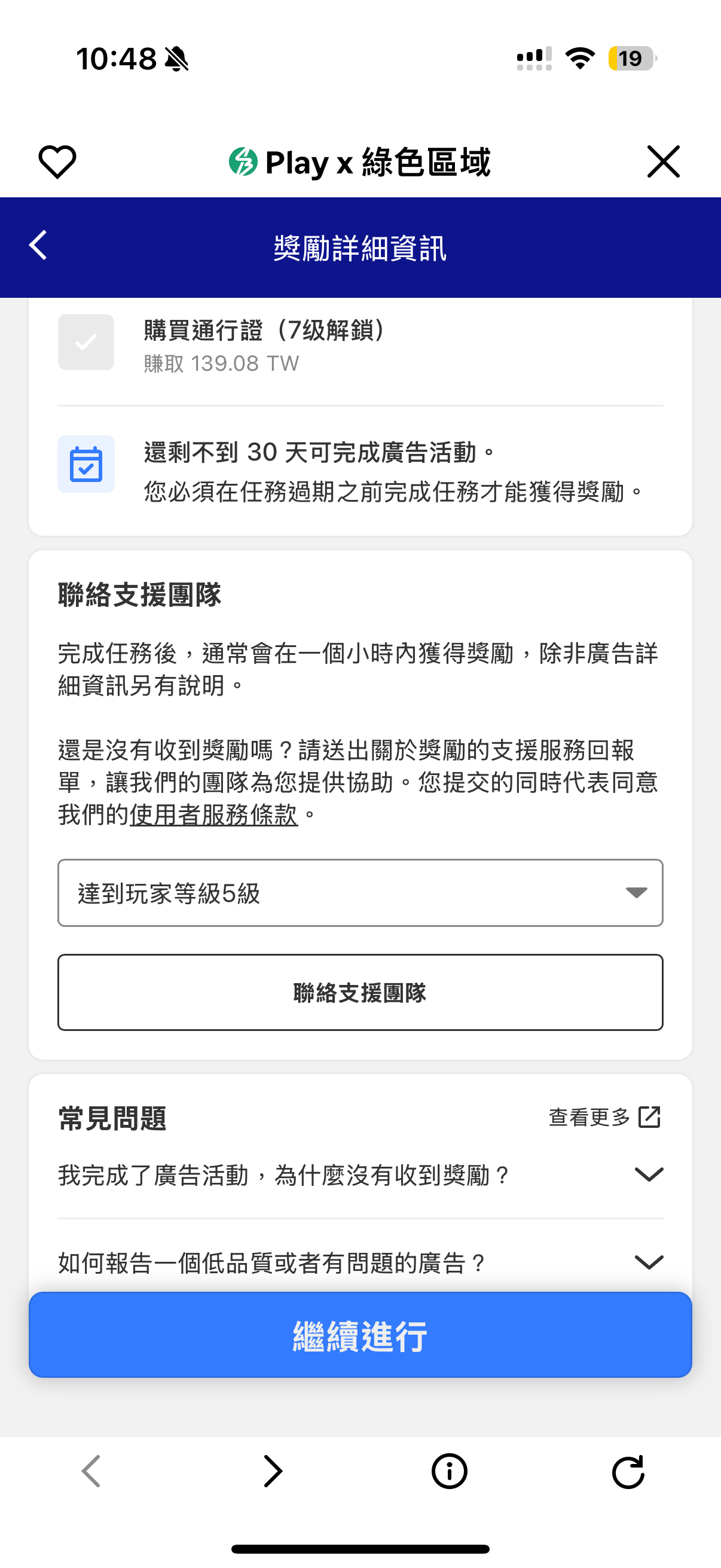 如果該任務包含多個關卡或活動任務,請選擇尚未收到獎勵的那筆活動任務或關卡。