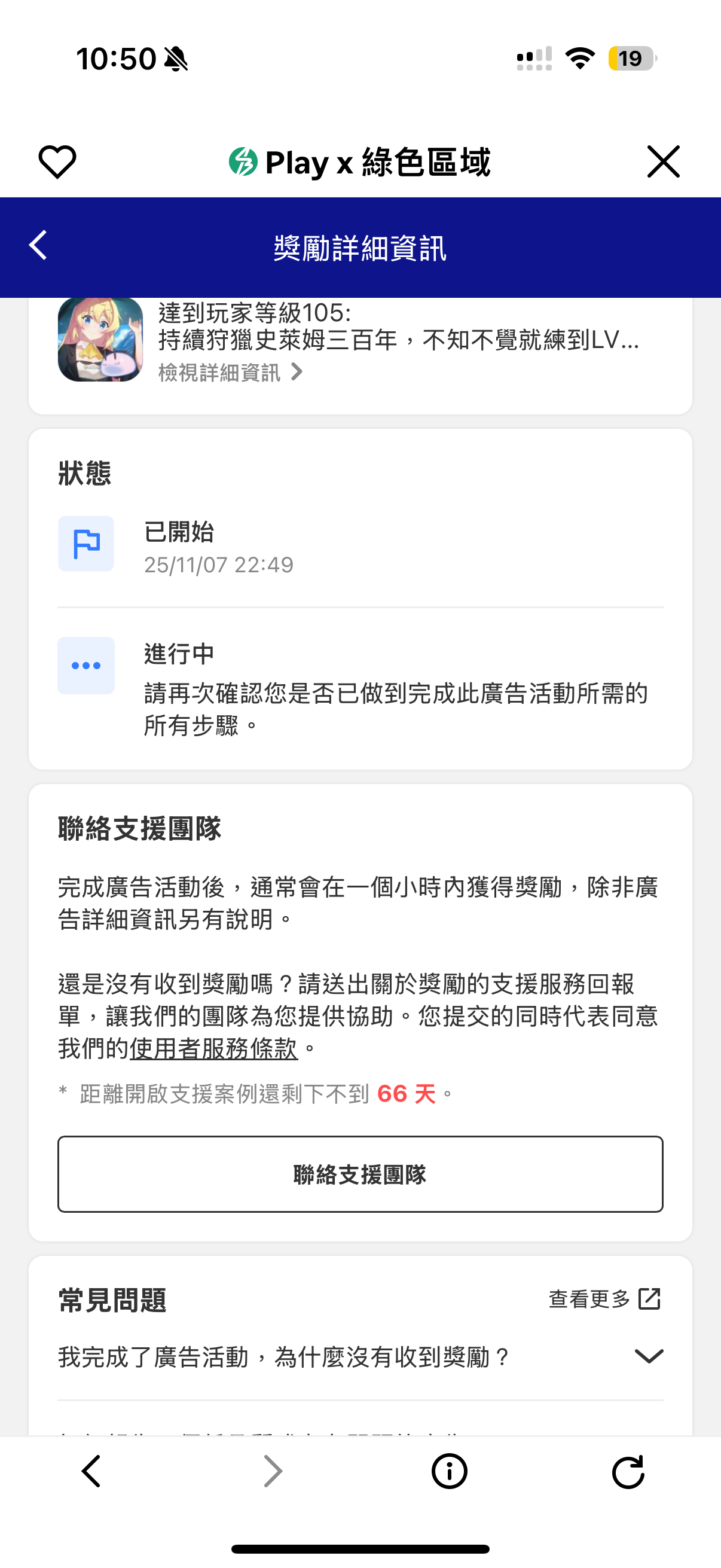 點選您尚未收到獎勵的任務,然後點選黑色的「聯絡客服」按鈕。